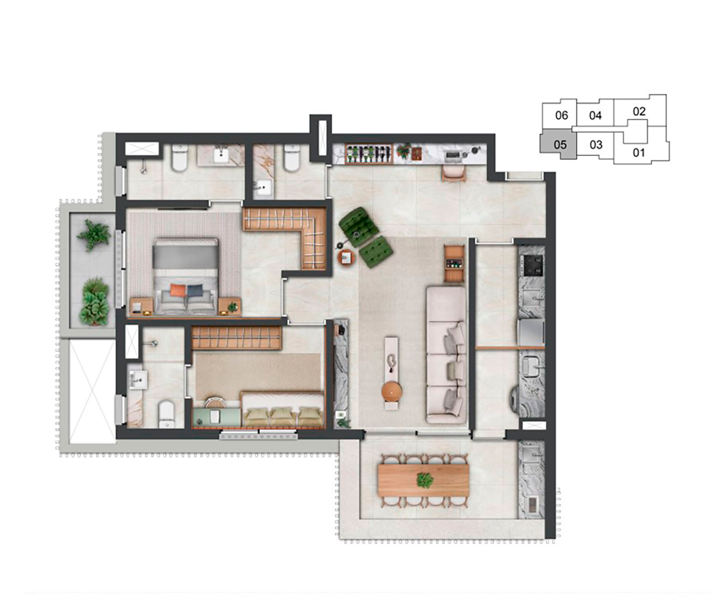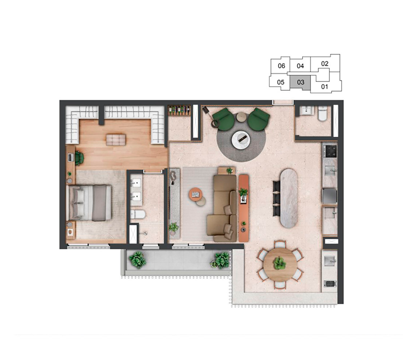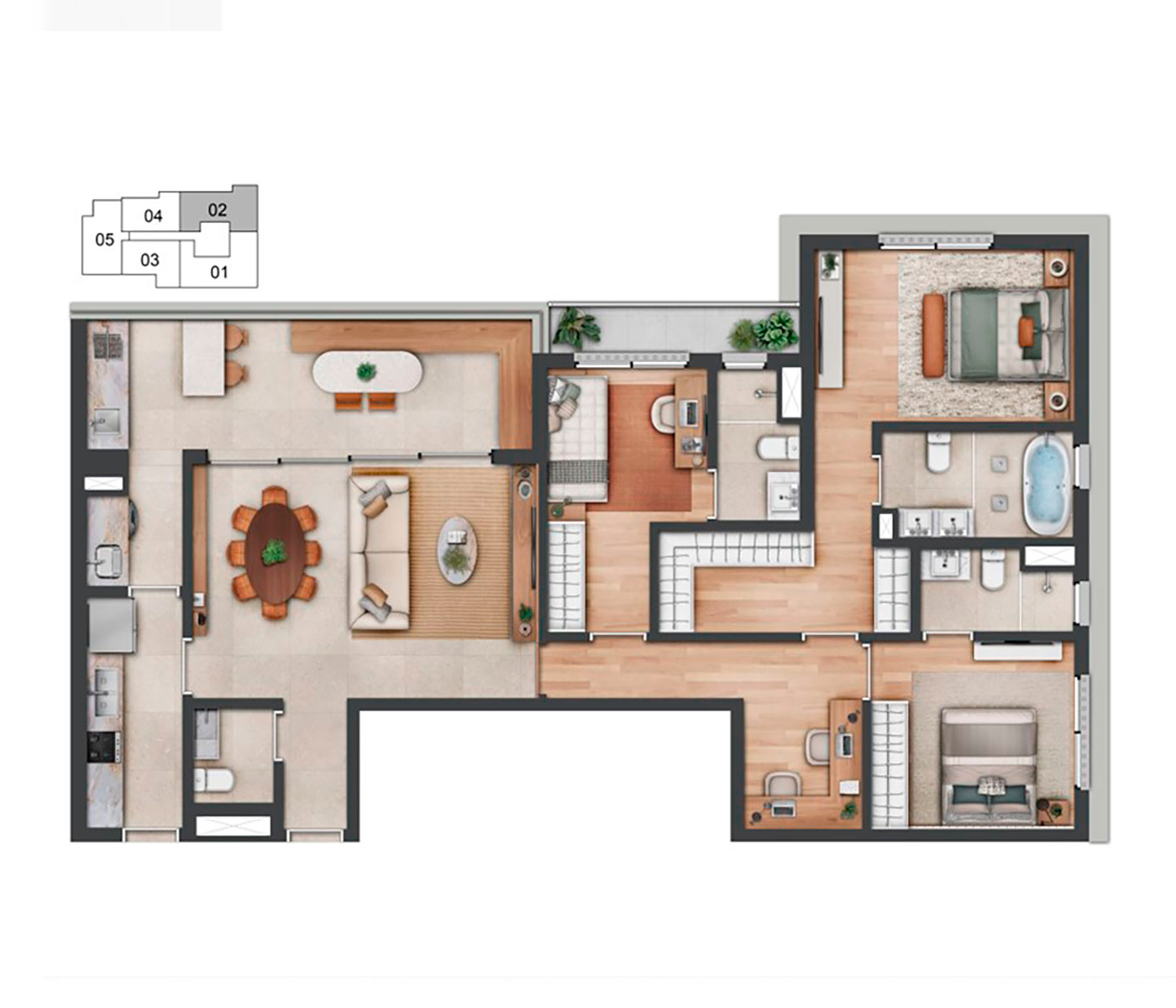 O conceito Wellness Experience se destaca como um refúgio de bem-estar e equilíbrio. O boulevard no térreo convida à interação e ao convívio.