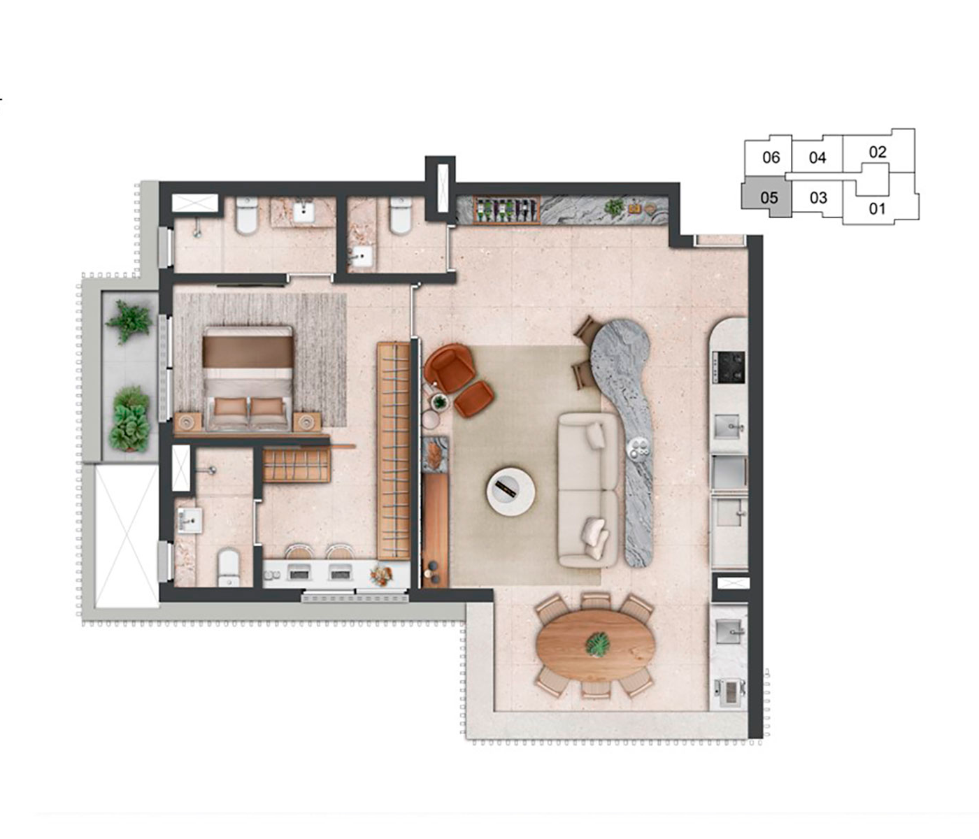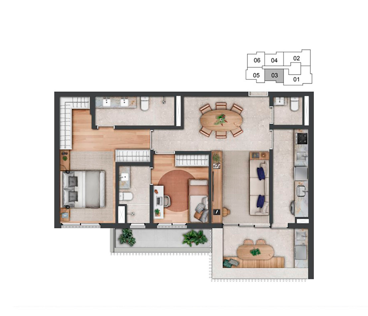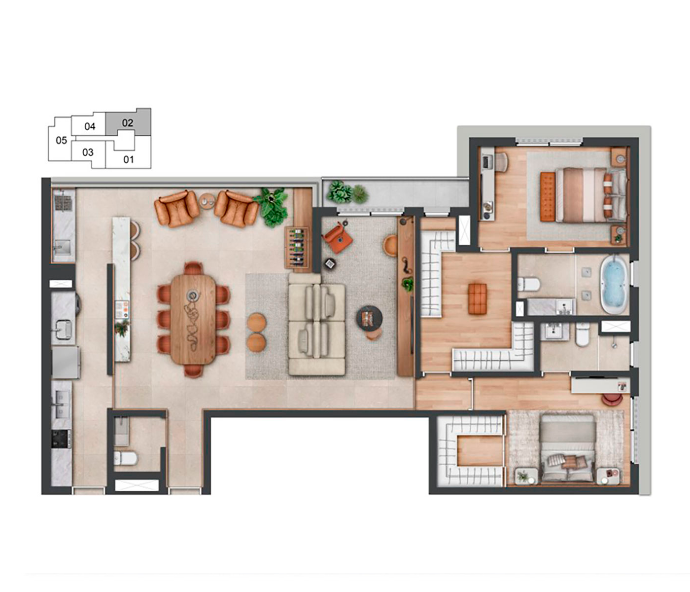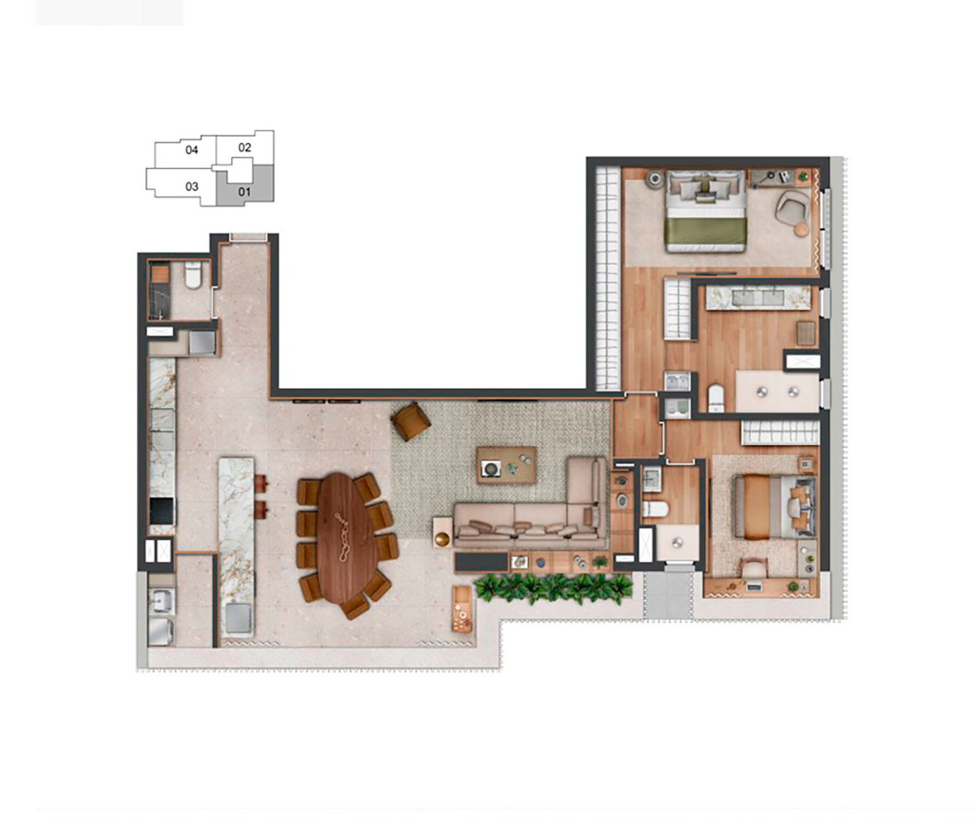O conceito Wellness Experience se destaca como um refúgio de bem-estar e equilíbrio. O boulevard no térreo convida à interação e ao convívio.